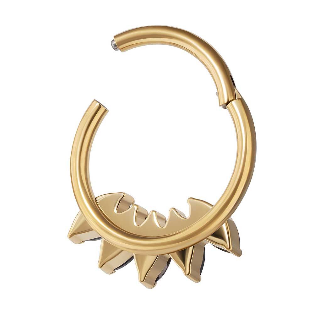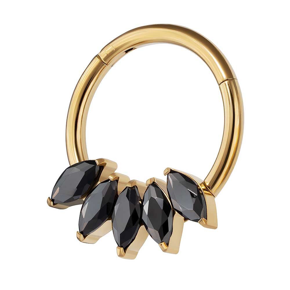Titanový kroužek clicker 5k Iris Black Gold PVD zdobený kubickými zirkony.